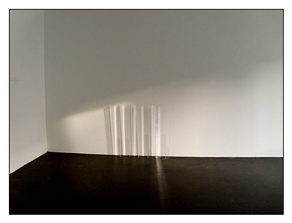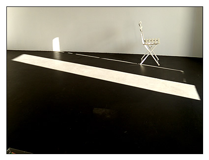 Ich warte. Nicht auf etwas. Ich warte auf eine Bewegung. Auf die Bewegung des Raumes, in dem ich stehe. Ich bewege mich nicht. Das Licht bewegt sich. Der Schatten, den das Licht über den Boden wirft, ihn sanft über die Lehne des Stuhls drapiert, berührt die Stelle, an der er den Raum durch das Fenster verlässt. Im Licht ist der Schatten des Raumes im Raum unsichtbar. Er bewegt sich. Zeit bewegt sich nicht. Ich warte auf sie. Sie wird nicht kommen. Sie ist immer da. Zeitlos und zeitlich im Raum.