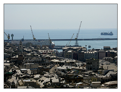 T12 Genua. Strandgut. Eine Stadt im Sommer. Tauben. Eine Unruhe. Ein flüchtiger Blick. Die Strassenflucht. Das Abendlicht, ein Schimmer hinter Glas am blauen Himmel. Tauben. Eine Liebesgeschichte über den Dächern. Treppen vor Hauseingängen, zwischen Hafenmauern. Die Hitze flimmernder Plätze. Mitternacht. Ornament. Stimmenfragmente in den Gassen. Rollende Blechdosen. Türen. Rufen. Stille. Auffliegende Tauben. Möwen. Möwen.