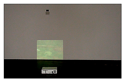 P7 2.Montage. Licht im Raum; es wandert, ein anderes bleibt stehen, beide kreuzen flimmernd projiziertes Farbgewässer. Fische fliegen im Quadrat, schweben im Grün, das sie umspült. Der Ventilator kühlt das Wasser. Der Raum bleibt still. Fische fliegen, sie trinken Luft. Ich notiere Zeiten an die Wand der einen Wirklichkeit.