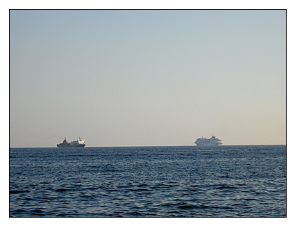 H8 Viel mehr dachte ich darüber nach, nicht den Horizont zu überqueren, sondern auf seiner Linie zu balancieren und zu beobachten, was vor ihm, aus dem mir unsichtbaren Raum, erscheint. Ich stellte mir die Frage, ob das, was erscheint, nur erscheint, weil es vor seinem Erscheinen, im Zwischenraum von „vor“ und „nach“ existiert. Wie könnten sonst in wenigen Minuten so viele Wellen, riesige Kreuzfahrt-und Kontainerschiffe oder Möwen oder Fischerboote auftauchen? Also muss etwas wissen, was genau in dieser Minute sich am Horizont abspielt, in der etwas in das Sichtfeld kommt, von dem ich nicht weiss und doch, sobald es auftaucht, erkennen kann.